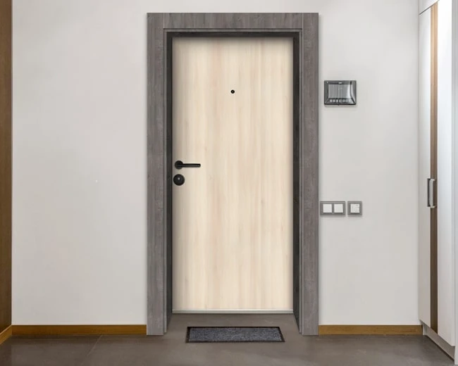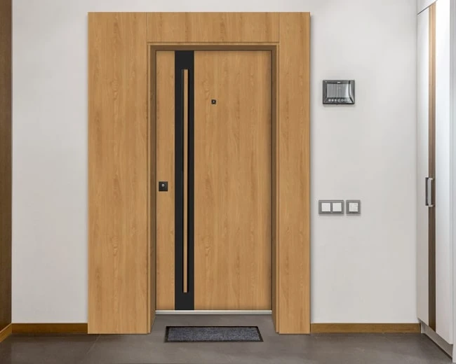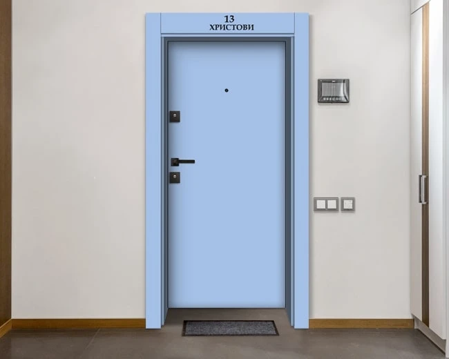 - Декоративни елементи – фрезоване, лайсни, възможност за надпис с фамилия и номер на апартамент, избор на пасивна дръжка, избор на активна дръжка от няколко модела;